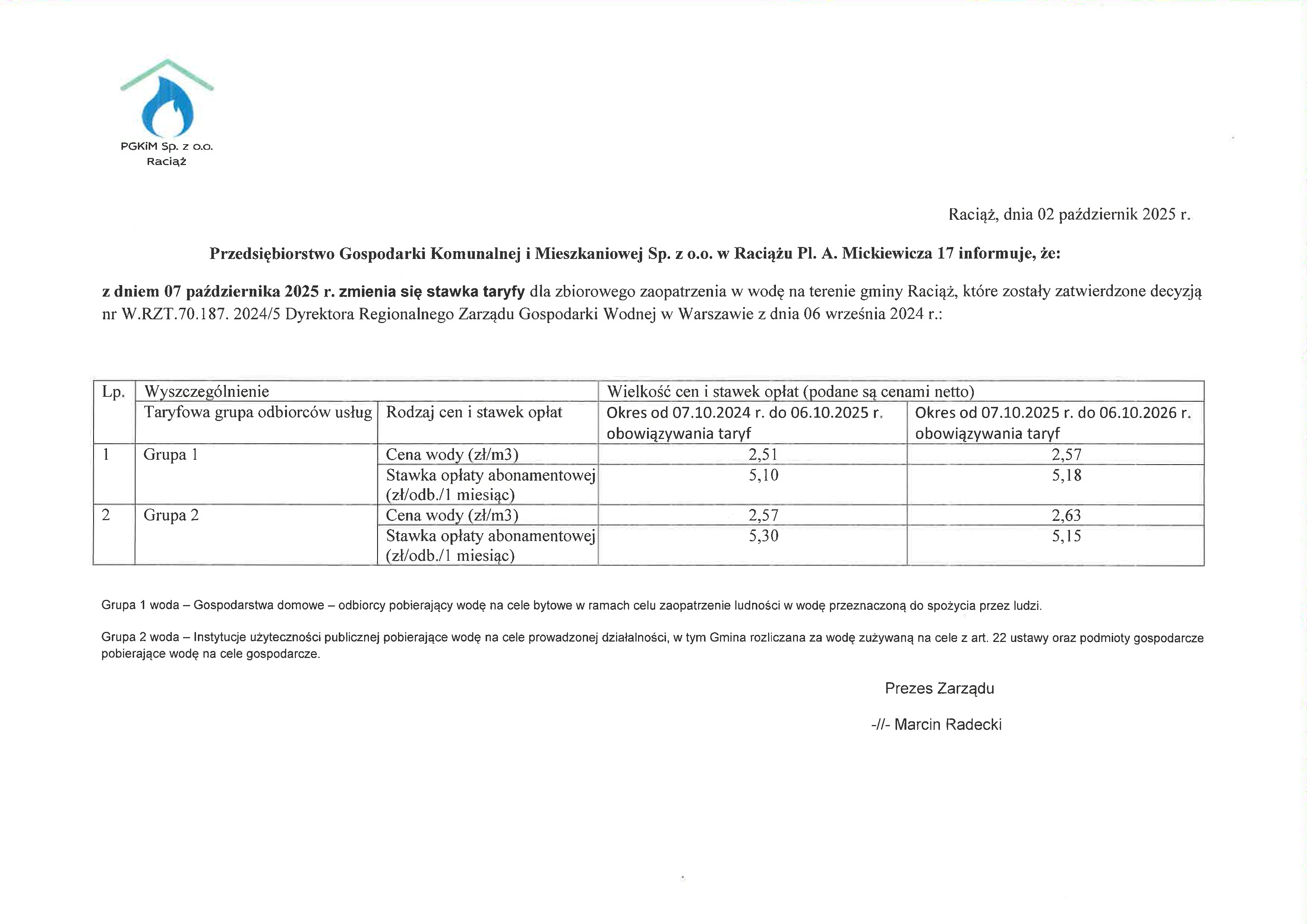 Zmiana stawki taryfy dla zbiorowego zaopatrzenia w wodę na terenie Gminy Raciąż - Aktualności - Gmina Raciąż