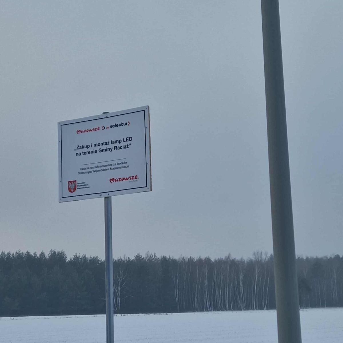 Gmina Raciąż zrealizowała zadanie pn.: Zakup i montaż lamp LED na terenie Gminy Raciąż – zadanie współfinansowane ze środków Samorządu Województwa Mazowieckiego w ramach programu “Mazowsze dla Sołectw” 2025