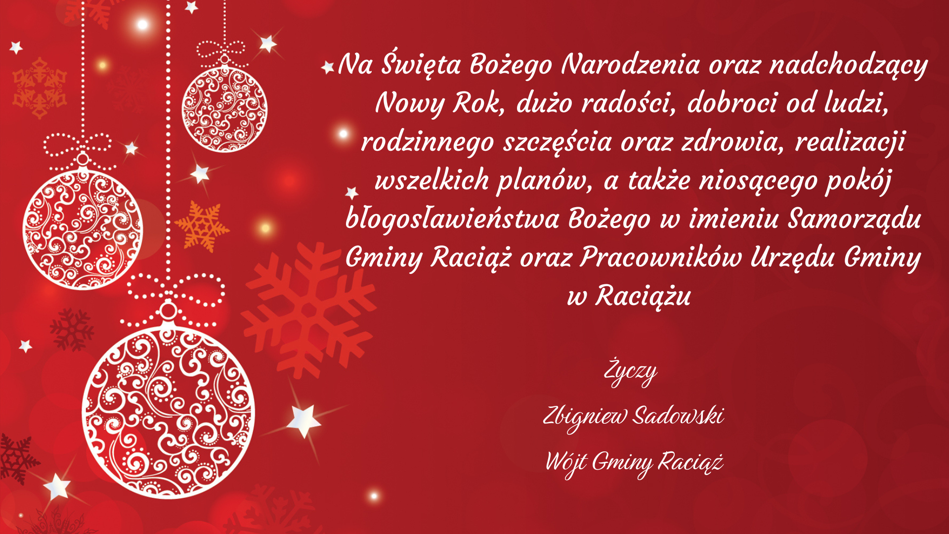 Życzenia Świąteczno-Noworoczne od Samorządu Gminy Raciąż - Aktualności - Gmina Raciąż