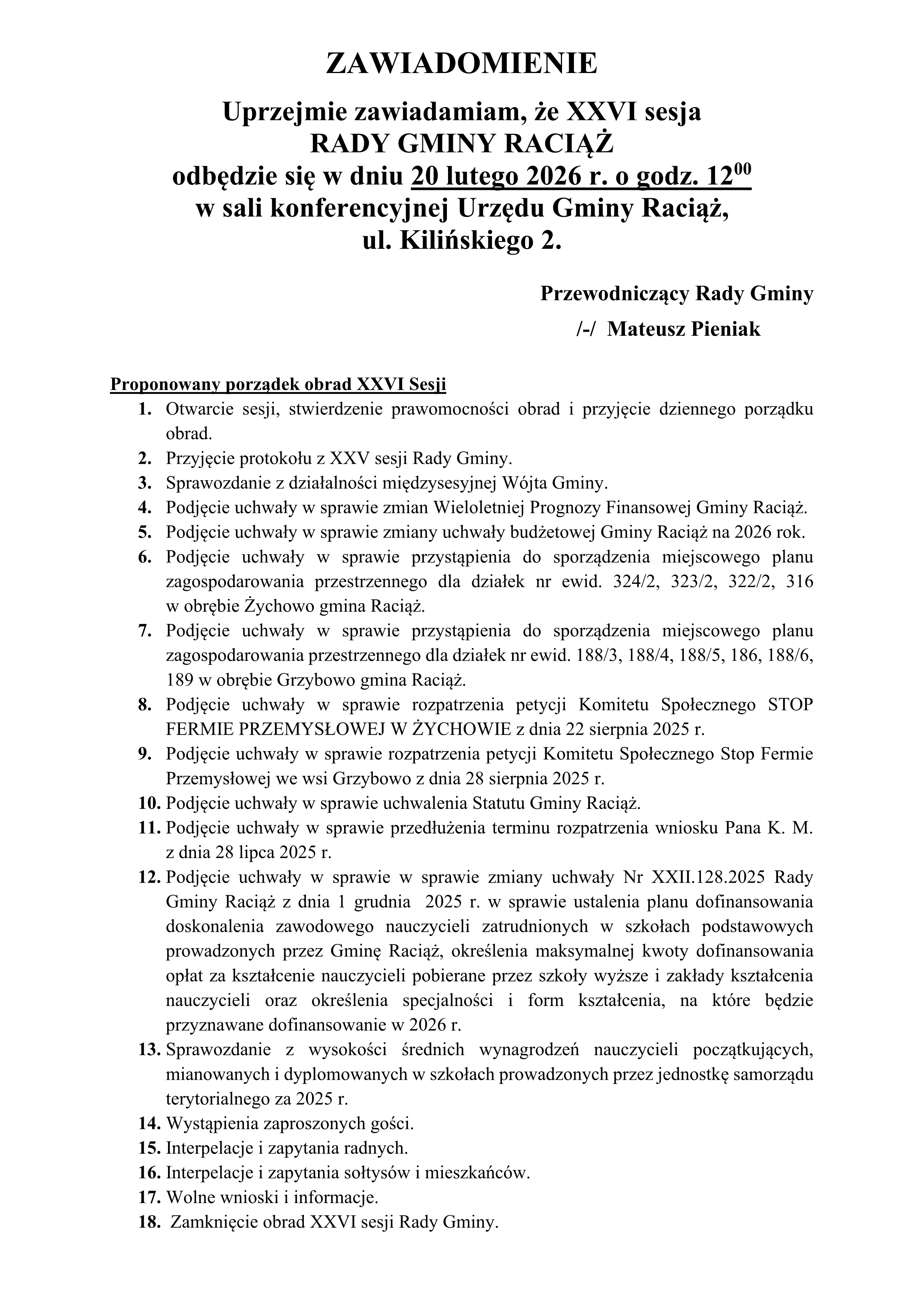 XXVI Sesja Rady Gminy Raciąż