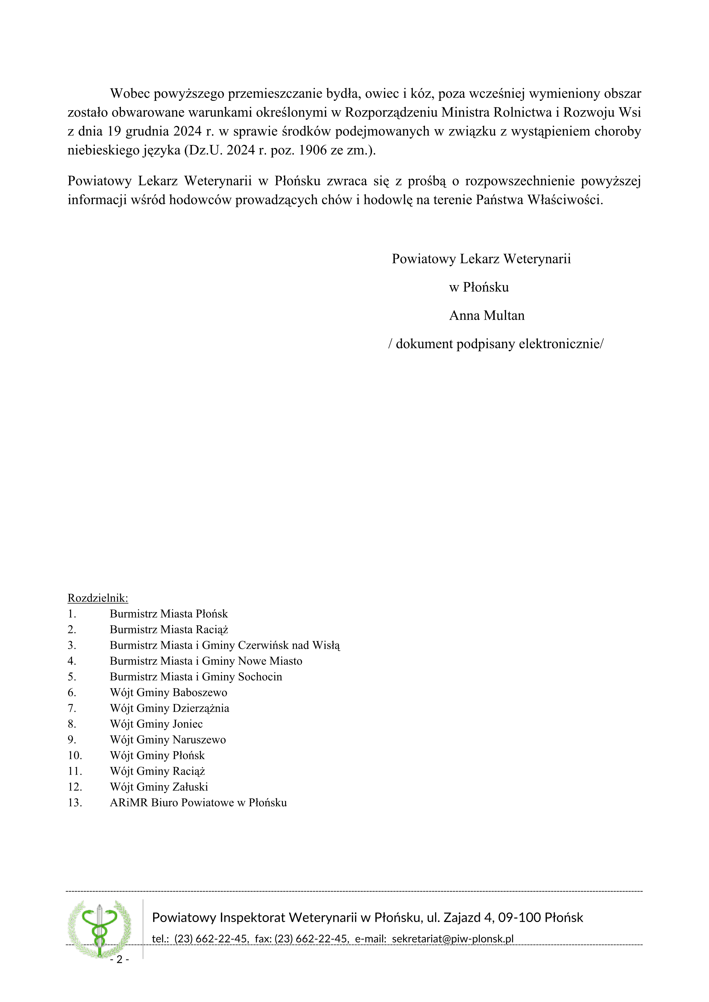 Informacja Powiatowego Lekarza Weterynarii w sprawie środków podejmowanych w związku z wystąpieniem choroby niebieskiego języka - Aktualności - Gmina Raciąż