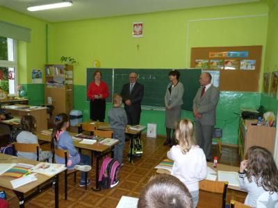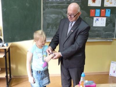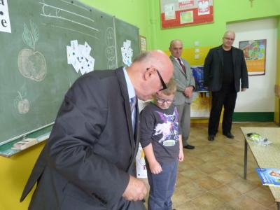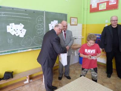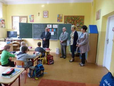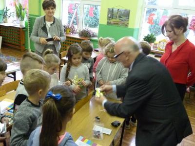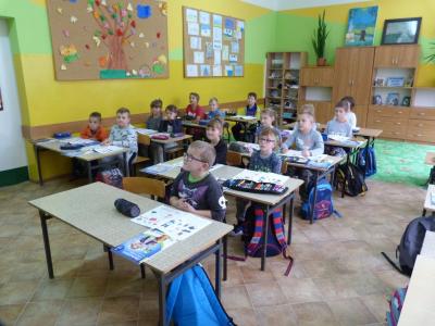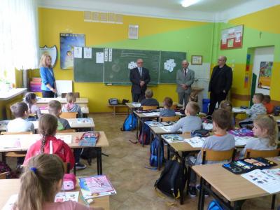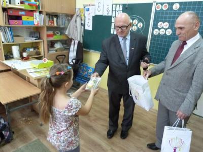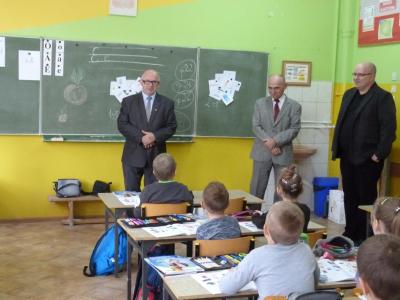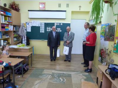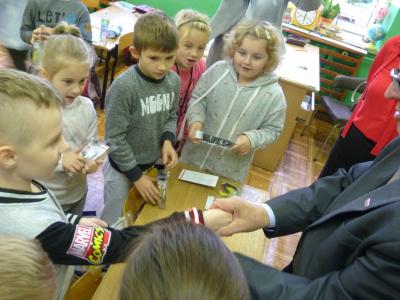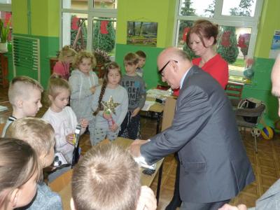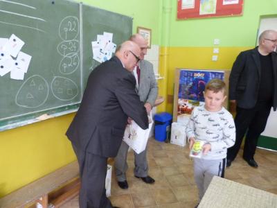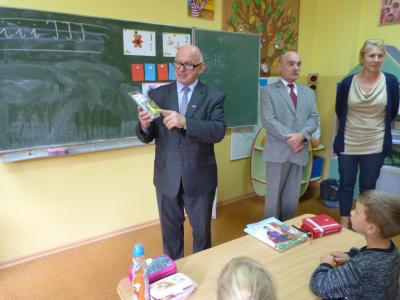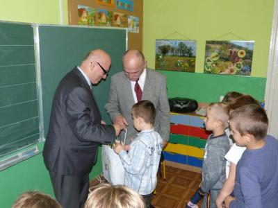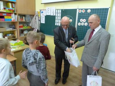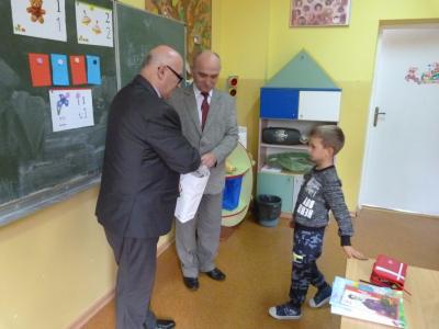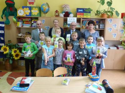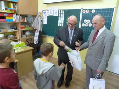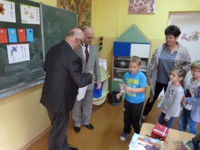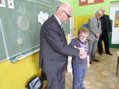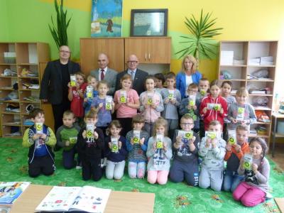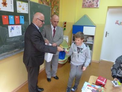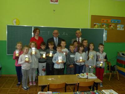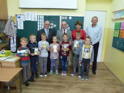 Spotkanie z pierwszoklasistami przebiegło w milej atmosferze. Dzieci wykazały się ogromną wiedza w zakresie bezpieczeństwa na drodze i prawidłowo odpowiadały na pytania zadawane przez przybyłych gości. W prezencie otrzymały opaskę sprężystą, dwie zawieszki do plecaków oraz opaskę odblaskową LED na obuwie, które wpływają na widoczność pieszego a tym samym zwiększają jego bezpieczeństwo.
